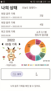 잦은 술자리로 건강이 염려된다면? 자신의 음주 습관을 기록해 보자. 술 마신 날짜, 음주량 등을 입력하면 통계 등 결과치를 한눈에 볼 수 있다. 최근 과음한 날이 많았다면 술을 조금 자제해 마시는 등 건강한 음주 습관을 기르는 데 효과적이다.