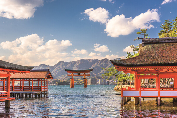 일본 히로시마현에 자리한 이츠쿠시마 신사는 땅이 아닌 바다 위에 지어진 것이 특징이다. 그 덕에 푸른 바다에 우뚝 선 붉은색 신사가 독특한 풍경을 자아낸다. 만조 때는 물에 잠기지만, 바닷물이 빠지면 걸어서 갈 수 있다. 특히 바다를 붉게 물들이는 일몰 때는 더욱 아름답기로 유명하다. 1996년 유네스코 세계문화유산으로 지정됐다.