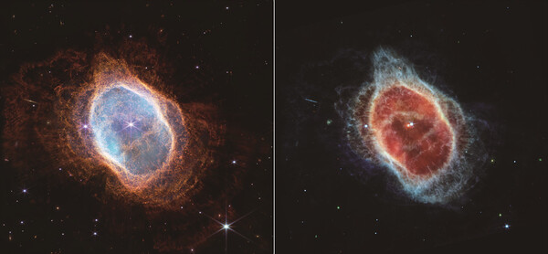 지구에서 약 2500광년 떨어진 것으로, 별이 소멸하는 과정에서 방출한 가스와 먼지로 이뤄진 성운을 촬영했다. 특히 중적외선으로 촬영한 사진에서는 하얀 별 옆에 숨어 있던 또 다른 별을 확인했다. 죽어가는 별 옆에 있는 더 젊은 별을 확인한 것인데, 허블이 촬영한 사진으로는 추측만 가능했던 것을 제임스 웹이 증명한 것이다.