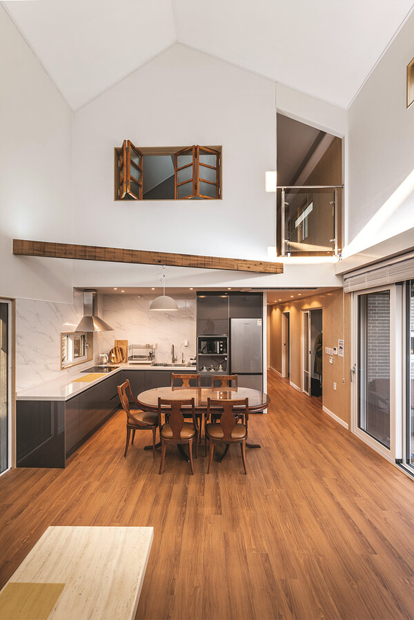 이: 일반적인 우리나라 아파트에서 볼 수 없는 공간이었으면 했다. 그래서 층고를 높게 해 이국적인 느낌을 살렸다. 천장 바로 밑에는 창을 둬 채광에 신경썼다. 창은 리모컨으로 작동할 수 있다.