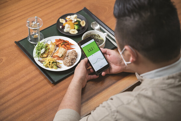 연속혈당측정기는 기본적으로 ‘기상 시’, ‘식사 전’, ‘식사 후’에 혈당을 체크하고, 식사 후에는 식후 30분, 1시간, 2시간 뒤, 수시로 측정한다. 측정 방법은 간단하다. 혈당 수치가 궁금할 때 수시로 스마트폰을 몸에 부착된 센서에 스캔하기만 하면 된다.