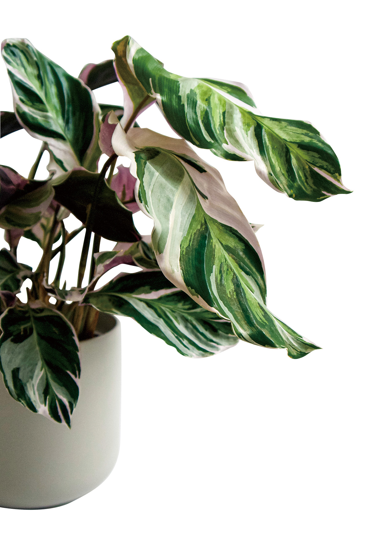 수채화물감이 번진 듯 오묘한 잎 패턴으로 많은 사랑을 받는 관엽식물. 밤이면 수분 보호를 위해 잎을 오므리는 모습 때문에 ‘기도하는 식물’로도 불린다. 다른 관엽식물에 비해 관리하기 까다로운 편이지만 초보자도 충분히 기를 수 있다.
