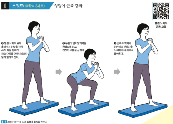 밸런스 패드 위에서 운동을 하면 균형을 잡기 어렵기 때문에 몸이 강도 높은 운동에 적응하게 되고, 자신에게 필요한 부위의 근력을 집중적으로 강화할 수 있다. 그래서 하체 안정화 능력과 전신 균형 능력을 향상시킬 수 있다. 또 패드의 두께와 쿠션감은 층간 소음을 예방하는 데도 효과적이다. 모든 운동을 진행할 때는 자신의 체력 수준에 맞게 해야 하며, 힘들면 쉬면서 진행하는 것이 좋다.