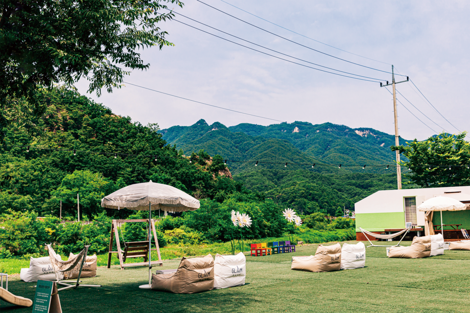 글램핑장 주변에는 포천의 명소 백운계곡이 위치해 있다. 계곡에 둘러싸인 고요한 숲속에서 고즈넉하게 산책을 즐기기에 좋다. 또 계곡 앞에는 작은 모래톱이 펼쳐져 있어 날이 더울 때면 물놀이를 즐기기에 좋고, 1급수 어종이 서식할 만큼 물이 맑아 낚시를 즐기는 이도 적지 않다.