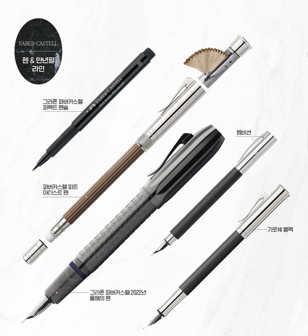 세계 최고 반열에 오른 이들이 파버카스텔에 애정을 드러낸 만큼 브랜드의 이미지는 자연스레 명품 필기구로 자리매김했다. 파버카스텔의 고급 필기구 라인인 ‘그라폰 파버카스텔’이 탄생한 건 높은 명성을 이어가기 위해서다. 1993년 론칭한 그라폰 파버카스텔은 장인의 핸드메이드 방식을 고집하는 데다 보석, 천연 우드 등의 고급 소재를 사용해 제작했다.