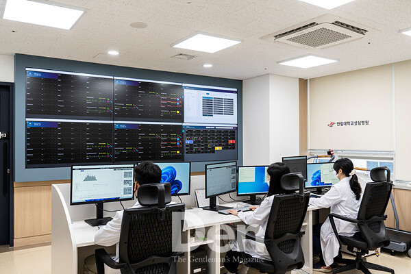 현재 평촌 한림대학교성심병원 심장내과 병상에 적용했고, 별도의 상황실을 구축해 테스트를 진행하고 있다. 상황실의 모습은 마치 경찰청의 CCTV 관제센터 같다. 커다란 전광판이 있고, 화면에 뜨는 각 환자의 상태를 한눈에 보며 대응한다는 점에서 비슷하다. 전광판을 통해 환자의 실시간 건강 상태뿐 아니라 병원 내에서의 동선까지 체크할 수 있어 환자 관리에도 매우 유용하다. 화면으로 특정 환자의 상태만 띄워 세부 사항을 볼 수도 있어 문제 발생 시 좀 더 신속하고 정밀한 대응도 가능하다. 이처럼 대면하지 않고도 환자를 볼 수 있다는 점에서 이 상황실을 ‘UPCC(Untact Patient Care Center)’라고 부른다. 이 모든 건 5G 정보통신망을 통해 클라우드로 연결되어 있기에 가능하다.
