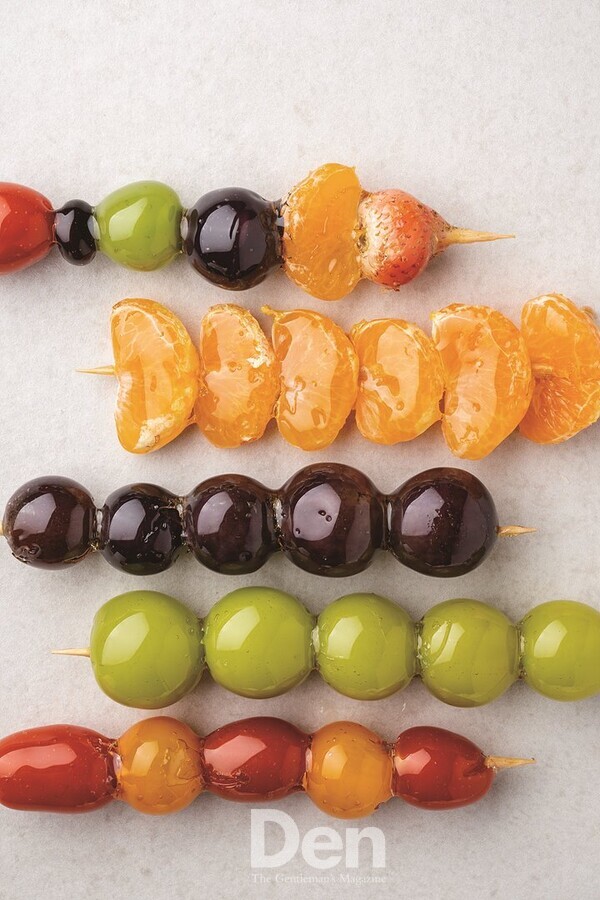 탕후루는 각종 과일을 꼬치에 꿴 뒤 녹인 설탕을 입혀 만든다. 녹은 설탕이 딱딱하게 굳어 과일을 감싼 모습인데, 한 입 베어 물면 바삭한 식감과 동시에 촉촉한 과즙을 맛볼 수 있다. ‘겉바속촉’의 식감이 탕후루의 매력인 셈이다.