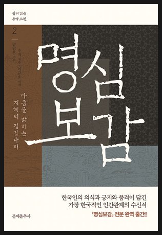 인간의 자기 수양과 윤리, 도덕, 처세 등에 관한 예지(叡智)를 수록한 책. 중국 고전에서 추려 모두 24편으로 만들었다. 선악을 구분하고 세상의 이치를 깨달을 수 있는 내용으로 구성되어 조선 시대 서당에서 교육용 교재로 사용했다. 제목인 ‘명심보감(明心寶鑑)’은 ‘마음을 밝게 해주는 책’이라는 뜻이다.