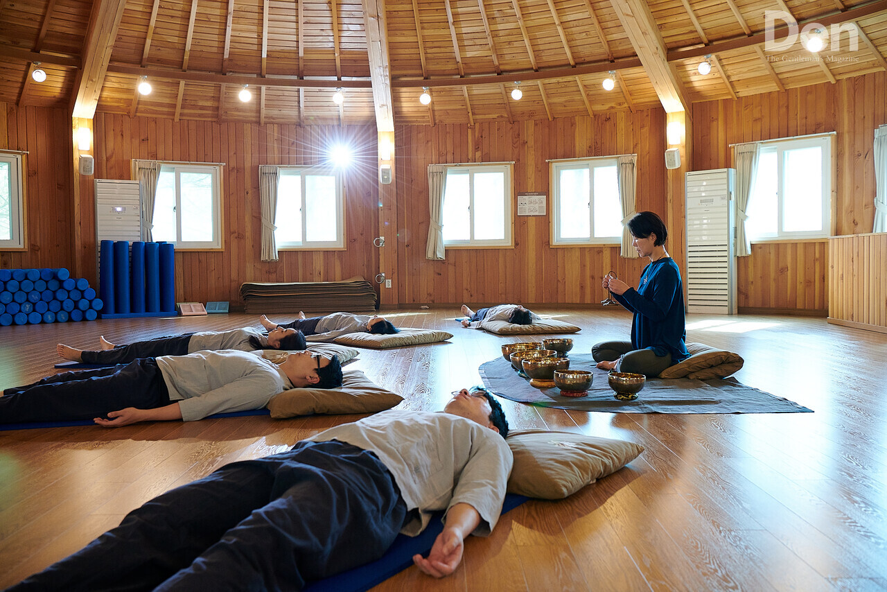 인터뷰에 앞서, 율지 강사는 내게 아로마 오일을 선물했다. 스트레스 해소, 긴장감 완화, 심신 이완에 좋다는 설명을 덧붙였다. 아로마 오일을 왼손 검지, 중지, 약지에 떨어트리더니 자신을 따라 마사지하라고 권했다. 귀 앞쪽을 지나 목, 쇄골까지 차례로 마사지를 해나갔다. 종일 마신 커피에도 도통 돌아오지 않던 정신이 금세 맑아졌다. 수십 년간 명상을 연구한 율지 강사의 이야기가 더욱 궁금해졌다.