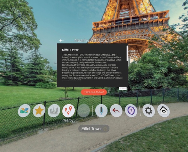 VR 기기 하나만 있다면 전 세계 모든 길을 걸어볼 수 있다. 구글어스처럼 원하는 지역의 로드맵을 클릭하면 화면에 나타나는데, 도로만 가능하던 구글어스와 달리 좁은 골목길도 가볼 수 있다. 크로아티아 두브로브니크의 중세 골목을 걸어보거나, 파리 샹젤리제 거리를 실제처럼 체험할 수 있는 것. 추천 명소 기능이 있어 해당 명소를 클릭하면 건물로 들어가거나 바닷속으로 들어가는 등 훨씬 구체적으로 탐색할 수 있다. 친구 초대 기능을 활용하면 친구와 동시에 접속해 자신이 가봤던 여행지를 가이드하며 ‘잘난 척’을 할 수도 있다.