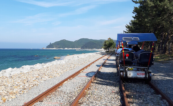 삼척레일바이크 하늘솔 황토민박에서 차로 30분 이내에 바다와 공원, 항구가 다 있다. 삼척의 대표 즐길 거리 삼척레일바이크는 예약하지 않으면 타기 어려울 정도로 인기를 끌고 있다. 삼척의 황홀한 바다를 끼고 달리는 만큼 레일바이크를 경험하는 것 자체만으로 힐링이 된다.