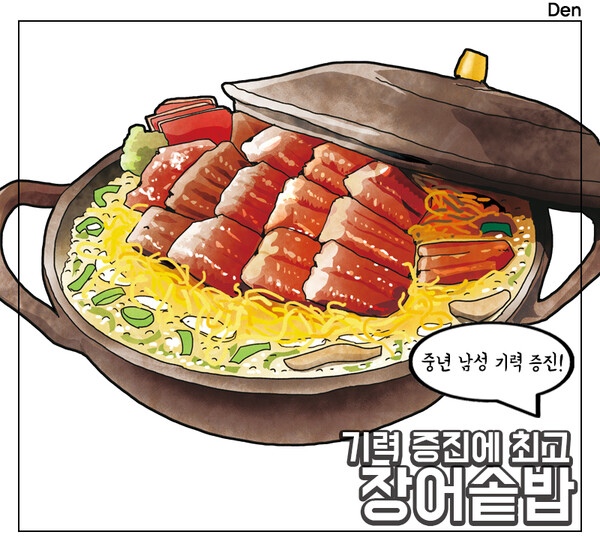 중년 남성의 활력을 돋워줄 추천 메뉴. 든든한 한 끼로 추천한다. 냉동 상태의 양념 장어를 구입하면 요리하기에 훨씬 수월하다.