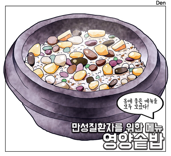 표고버섯, 잣, 대추, 호두, 당근 등 몸에 좋은 재료를 모두 모았다. 고기 먹기가 까다로운 만성질환자를 위한 별미다.