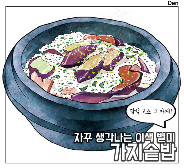 가지는 식감과 특유의 향 때문에 호불호가 갈린다. 하지만 솥밥으로 먹어보면 담백하고 고소한 맛에 반하게 된다.
