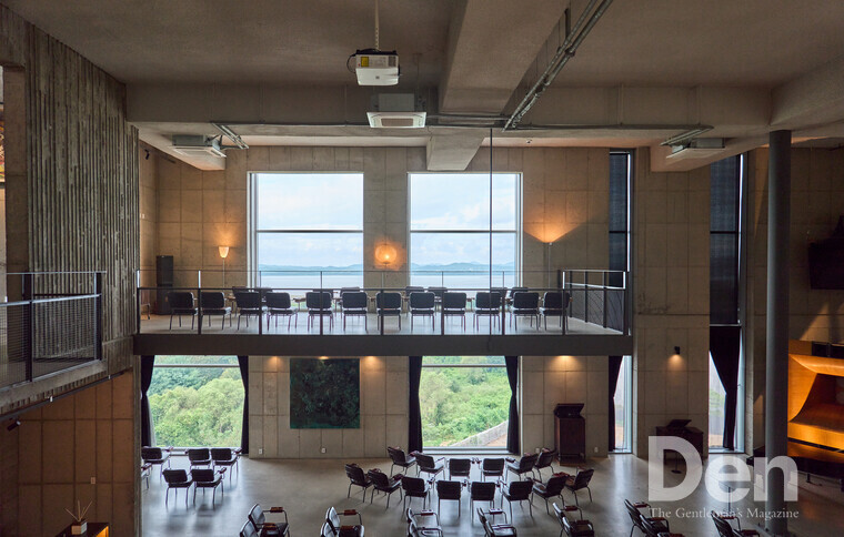 자유로움 속에서 음악에 빠질 수 있는 공간을 만들고 싶었다. 개인적으로 구속을 싫어한다. 대형 콘서트홀에 가면 보통 공간 자체가 밀폐되어 있고, 정해진 좌석에 앉아 움직일 수 없지 않나. 그런 제약 없이 누구나 자유롭게 음악을 즐길 수 있길 바랐다. 특히 자연 속에서 음악을 즐길 수 있는 공간이길 원했다. 임진강과 숲을 곁에 둔 이 위치에, 통창으로 자연을 바라볼 수 있도록 건축한 이유다.