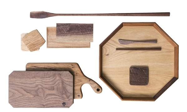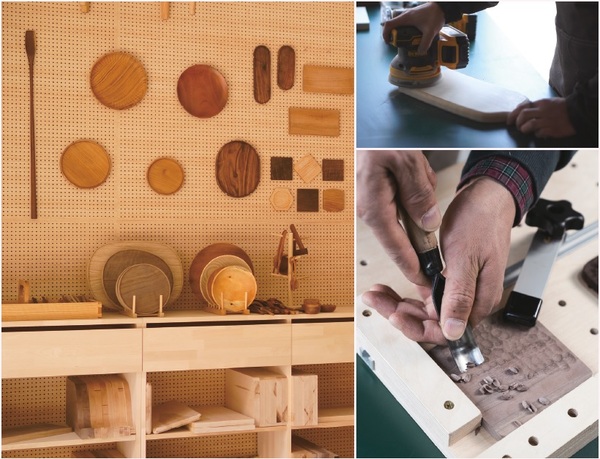 도마 3종, 사각 트레이, 티 코스터와 젓가락, 버터 나이프, 스툴, 의자, 구둣주걱, 안마봉 등 원하는 모든 목공 제품을 만들 수 있다.