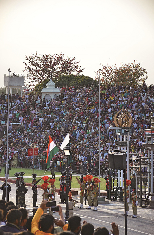 와가(Wagah)는 인도 서북부의 암리차르(Amritsar)와 파키스탄 북동부의 라호르(Lahore) 사이에 있는 작은 국경 도시다. 특별한 자연경관도, 문화유적도 없는 이 도시가 내셔널지오그래픽에 소개되고, 매일 관광 버스를 운행하는 명소가 된 이유는 바로 ‘국기 하강식’ 때문. 한일 관계만큼이나 앙숙인 두 나라가 매일 서로 더 화려한 퍼포먼스를 펼치며 기싸움을 하는데, 퍼포먼스 자체는 우스꽝스럽기 짝이 없지만 이를 행하는 군인들의 모습은 사뭇 진지하다.