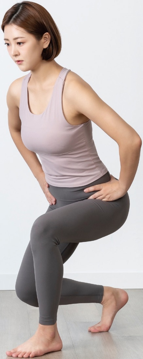 “골반을 유연하게 하는 동작으로 무릎과 허리의 부하를 줄이고 척추를 바르게 하는 데 도움을 준다.”