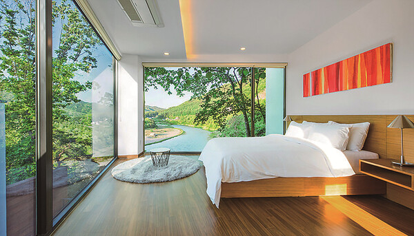 객실 타입은 실내 미온수 프라이빗 풀이 있는 ‘포레스트’, 야외 대형 스파가 있는 ‘힐즈’, 유일하게 수영장과 최고급 제트 스파가 모두 있는 ‘벨리’, 부엌 시설을 갖춘 ‘스트림’ 등 네 가지다. 특히 겨울에도 야외 스파에서 노천탕을 즐길 수 있어 추울수록 인기 만점이다. 모든 침실에는 커다란 창이 나 있어 계절에 따라 변하는 자연 풍광이 그림처럼 펼쳐지기에 자연 속에서 진정한 여유로움을 만끽하기에 안성맞춤인 곳이다.