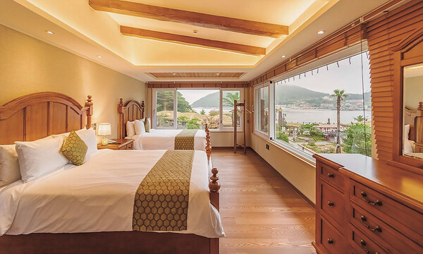 한산마리나호텔&리조트는 물 위에 지은 ‘수변형 리조트’다. 밀물 때는 테라스 아래가 바닷물에 잠겨 일부 객실에서는 물 위에 떠 있는 것 같은 독특한 경험을 할 수 있다. 또 객실 현관문을 열면 바로 야외 풀장이 펼쳐져 동남아 고급 풀 빌라에 온 듯하다. 객실 중 스위트룸은 개별 정원과 단독 야외 저쿠지가 있어 휴식을 만끽할 수 있다. 또 침실과 거실에 발코니가 있는 오션스위트는 눈앞에서 바다를 감상할 수 있다.