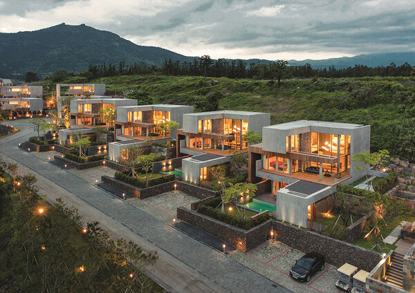 해안 절벽 풍경을 담은 구릉지에 지은 베이힐풀앤빌라는 커다란 통유리 창과 나무로 마감한 외관, 노출 콘크리트 독채가 자연과 조화를 이룬다. 건축가 김동진이 지은 곳으로, 다양한 각도와 프레임으로 담아낸 공간적 장치가 호평받아 ‘2015년 한국건축가협회상’을 받았다. 전 객실에서 바다 조망이 가능한 오션 뷰로, 1개의 호텔동과 9개의 빌라동이 있다. 호텔동은 복층 구조로 천장이 높고, 개인 수영장과 저쿠지가 있다.
