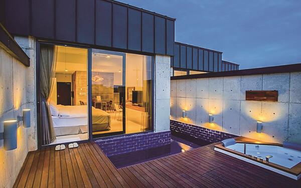 총 30개의 객실 중 독채형은 딜럭스 스위트룸과 로열 스위트룸 14채다. 그중 로열스위트룸은 드라마 <도깨비> 촬영지로 선정될 만큼 객실 중 가장 아름다운 경관을 자랑한다. 2개의 침실과 탁 트인 대청마루, 앞뒤 마당까지 갖춰 전통 양반 가옥을 연상시킨다. 서까래와 대들보가 보이는 천장은 안정감을 주고, 넓은 마당의 초목은 유익한 자연의 기운을 불어넣어 심신을 정화해준다. 대형 편백나무 욕탕과 사우나는 힐링을 위한 화룡점정이다.