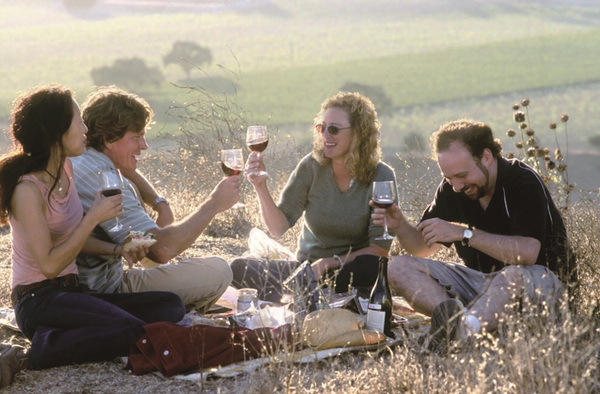 마일스는 와인 애호가이자 영어 교사로 소심하고 무료한 삶을 살지만 훌륭한 와인을 마실 때만큼은 활기가 넘친다. 그는 절친이자 한물간 배우 잭의 결혼을 축하하기 위해 와인 산지인 캘리포니아 산타바바라로 여행을 떠난다. 떠나간 사랑에 미련이 많은 마일스와 여자라면 환장하는 잭의 좌충우돌 여행기는 코믹하면서도 왠지 짠하다. 다수의 영화제에서 각본상과 작품상 등을 수상한 이 영화는 곳곳에 와인이 등장하는데, 와인 애호가들이 열광할 정도로 수준급이다.
