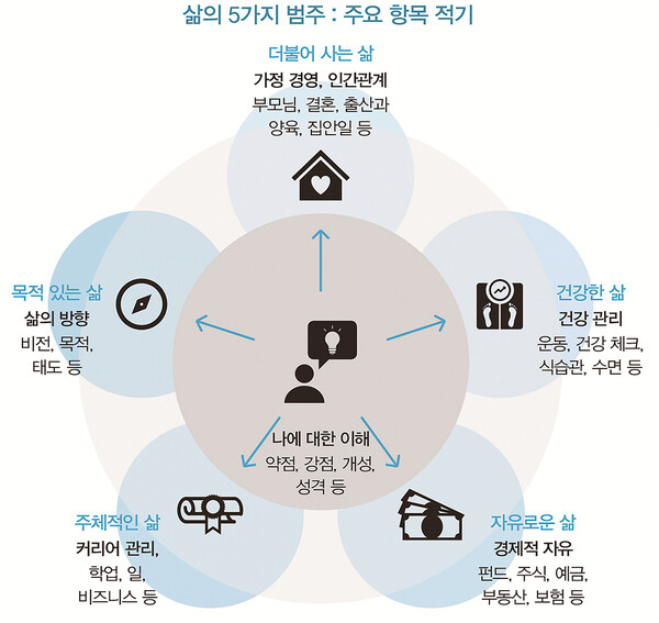 삶의 5가지 범주를 정하는 가이드맵이 인상적이다. 이렇게 하면 누구나 멋진 삶을 살 수 있을까?