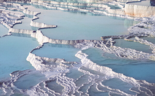 터키 대표 여행지인 파무칼레는 터키 남서부의 석회암 지대다. 새하얀 석회암 바위들이 마치 수많은 목화꽃이 만개해 이루어진 장엄한 성처럼 우뚝 서 있어 장관을 연출한다. 빛 좋은 날에는 파란색으로 빛나고, 일출과 일몰 시간에는 분홍색 하늘을 담아내며 잊지 못할 풍광을 연출한다.
