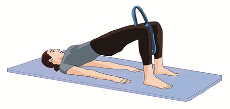 브리지 운동은 엉덩이근육과 코어근육 발달에 효과적인 운동이다. 필라테스 서클을 활용해 브리지 운동을 할 경우, 엉덩이와 코어근육뿐 아니라 내전근까지 강화할 수 있다. 내전근은 우리 몸의 균형을 잡아준다.