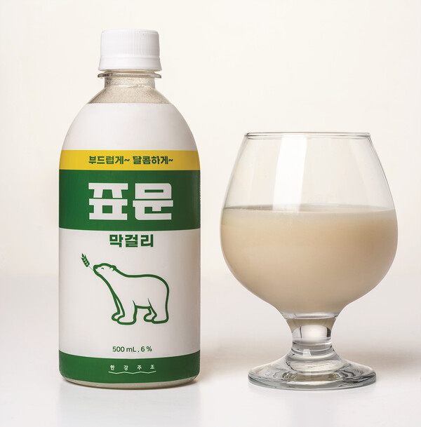 대한제분의 밀가루 브랜드 ‘곰표’와 MZ세대가 사랑하는 막걸리 양조장 ‘한강주조’가 협업해 선보였다. 막걸리를 거꾸로 뒤집으면 라벨의 글자 ‘표문’이‘곰표’로 변해 신기하다. 국내산 밀 누룩과 서울 강서구에서 재배한 경복궁쌀을 주원료로 해 맑고 깨끗한 맛이 난다. 감미료를 첨가하지 않아 쌀 본연의 단맛을 고스란히 느낄 수 있다.