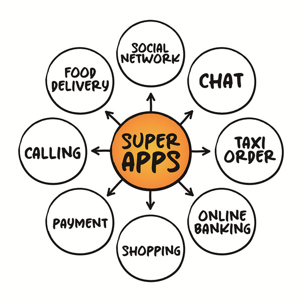 아이디 하나로 검색과 쇼핑, 송금, 결제까지 다 되는 앱. 네이버, 카카오톡이 대표적인 예다. 현재 야놀자, 여기어때 등 숙박 예약 앱과 각종 은행 앱, 쏘카 등 차량 렌털 앱 등도 슈퍼앱을 표방하며 본격 경쟁에 뛰어들었다.