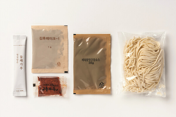 전주 한옥마을 필수 코스 중 하나인 유명 맛집 ‘베테랑’의 대표 메뉴. 달걀을 푼 국물에 김 가루와 들깻가루, 고춧가루 조합의 3색 고명으로 맛과 비주얼을 모두 챙겼다. 라면 못지않게 조리법이 간단해 게으른 ‘아재’에게 적극 추천한다. 멸치간장을 베이스로 한 밑국물로 본점 칼국수 맛을 살렸지만, 면발의 식감은 살짝 아쉽다. 달걀은 구성품에 포함되어 있지 않으니 따로 준비해야 한다.