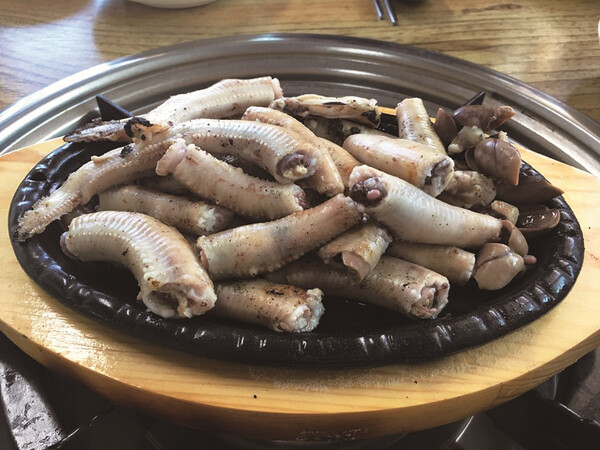 여름 별미로 즐기는 곰장어구이는 기장이 유명하다. 부산역에서 차로 40분 정도 가면 나오는 기장은 볏짚에 구워 먹는 ‘짚불 곰장어구이’가 대표 메뉴로, 아궁이에 볏짚을 쌓고 석쇠에 곰장어를 얹은 뒤 불을 붙여 구워 새카만 것이 특징이다. 검게 탄 껍질을 벗겨내면 야들야들한 곰장어의 속살이 기가 막히다. 기장 용궁사 인근에 위치한 촌집장어구이(051-721-0606)는 전통 방식 그대로 구워 사람들이 즐겨 찾는다.