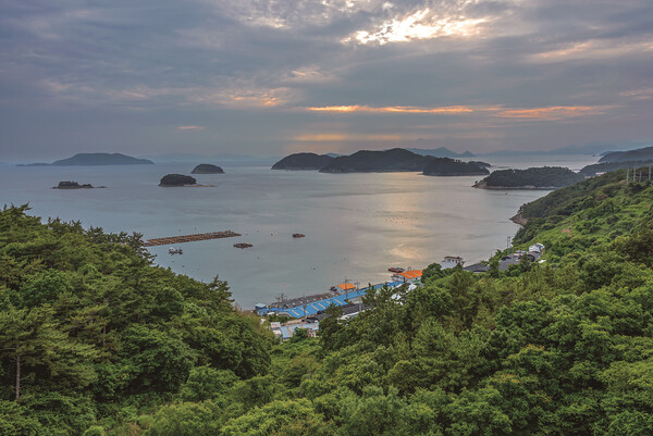 미륵도를 한 바퀴 돌아볼 수 있는 산양일주도로는 통영 제일의 해안 드라이브 코스다. 총길이 24km. 길을 따라가다 보면 쪽빛 바다와 크고 작은 섬이 나타났다 사라지기를 반복한다. 이 도로의 하이라이트는 달아공원 부근. 공원 정상에 자리한 관해정에 오르면 미륵도 주변을 감싸고 있는 바다 풍경이 파노라마처럼 펼쳐진다.
