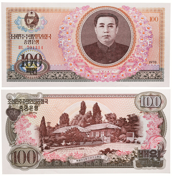 1979년 3차 지폐개혁 때부터 최고액권에 김일성 초상이 들어가기 시작했다. 이때부터 북한의 최고액권 지폐 앞면에는 김일성 초상이 들어간다는 불문율이 생겼다. 그러다가 2014년에 최고액권(5000원권) 디자인이 바뀌어 김일성 초상 대신 그의 생가가 들어가게 됐다. 이를 두고 김정은의 김일성 흔적 지우기라는 추측과 1만원권 발행을 위한 준비라는 설이 엇갈렸다.