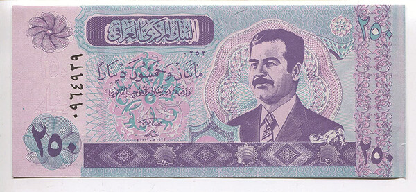후세인은 1993년부터 모든 이라크화에 자신의 초상화를 넣었다. 이 지폐들은 일명 ‘사담 디나르화’라고 불렀다. 후세인 정권이 붕괴된 후, 신권 지폐가 발행되면서 역사 속으로 사라졌다. 아이러니하게도 후세인은 부통령 시절(1968~1979년)에는 이라크의 경제발전을 진두지휘한 유능한 정치인이었다. 그러나 쿠데타로 집권한 1979년부터는 자신을 신격화하고 최소 50만 명 이상을 학살하는 등 이라크 전체를 공포에 떨게 했다.