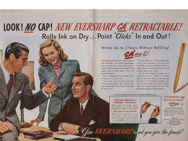 제1차 세계대전 직후 세계적인 물자 부족 현상이 심각했다. 종이 역시 질이 매우 떨어져 날카로운 만년필 촉에 종이가 찢어지는 일이 잦았다. 헝가리 기자 라즐리 비로는 진흙이 묻은 공이 굴러가는 것 에서 영감을 얻어 1938년 잉크가 있는 펜 끝에 볼을 달아 작은 마찰 에도 잉크가 묻을 수 있는 볼펜을 개발했다. 높은 고도에서도 잉크가 새지 않아 영국 공군에 대량 공급되면서 세계적으로 널리 사용되기 시작했다.