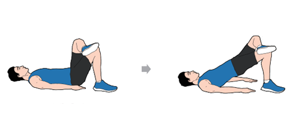 ➋ 지지하는 발의뒤꿈치로 바닥을 누르면서 엉덩이를 들어 올린다. 다리를 바꿔 같은 동작을 실시한다.