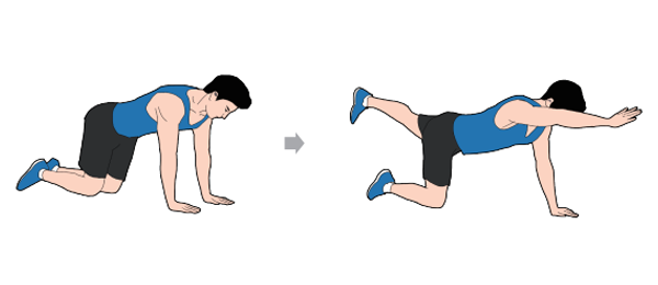 5. 버드도그(10회씩 3세트): 밸런스, 코어 근육 강화 및 어깨 안정화