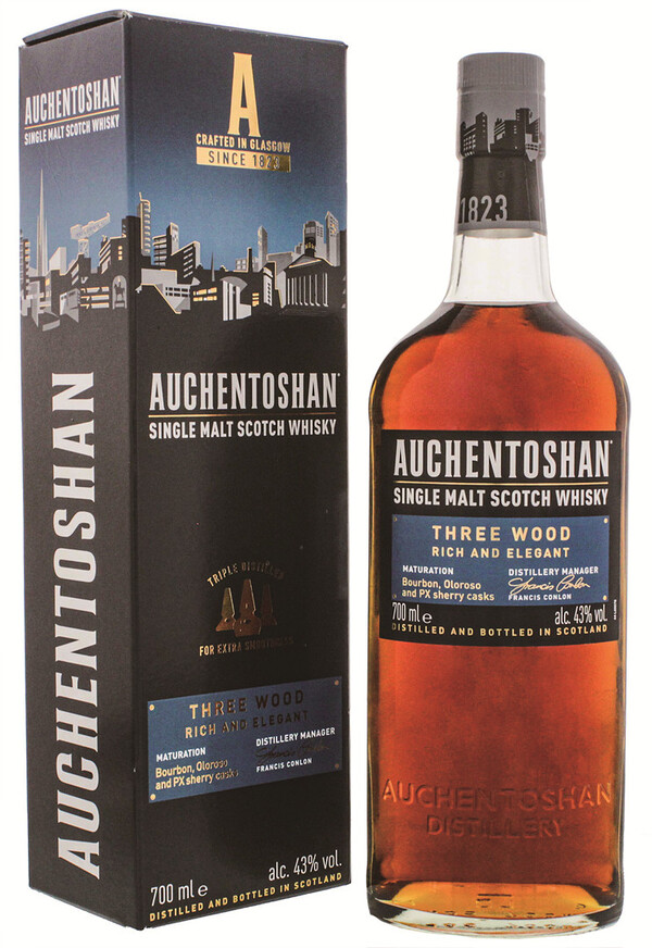 오켄토션 증류소의 최상위 라인. ‘스리 우드’라는 이름에 걸맞 게 세 가지 오크통에서 숙성한 로 랜드 싱글 몰트위스키다. 버번 오 크통에서 원액이 최초로 숙성됐 고, 스페인산 올로로소 셰리 오크 통에서 두 번째 숙성됐으며, 마지 막으로 페드로 히메네즈 오크통 에서 추가 숙성됐다. 바닐라, 셰리, 견과류 등 모든 풍미가 잘 어우러 져 호평받고 있다.