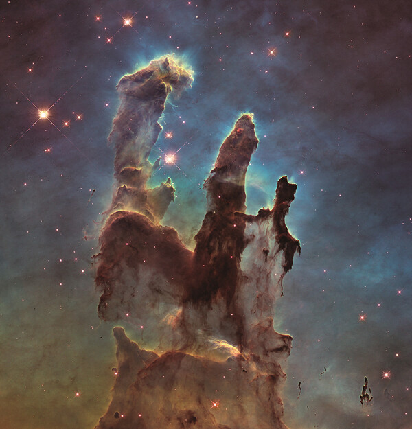 허블 우주 망원경이 1995년 촬영한 수리 성운 중심부의 성간 가스와 먼지 덩어리로 독수리 머리 모양을 닮았다. ‘창조의 기둥’이라는 별명이 있는데, 이유는 이 성간 가스 내부에서 새로운 별의 탄생이 활발하게 일어나고 있기 때문. 지구에서 약 7000광년 떨어져 있으며, 맑은 날에는 육안으로도 확인할 수 있다.